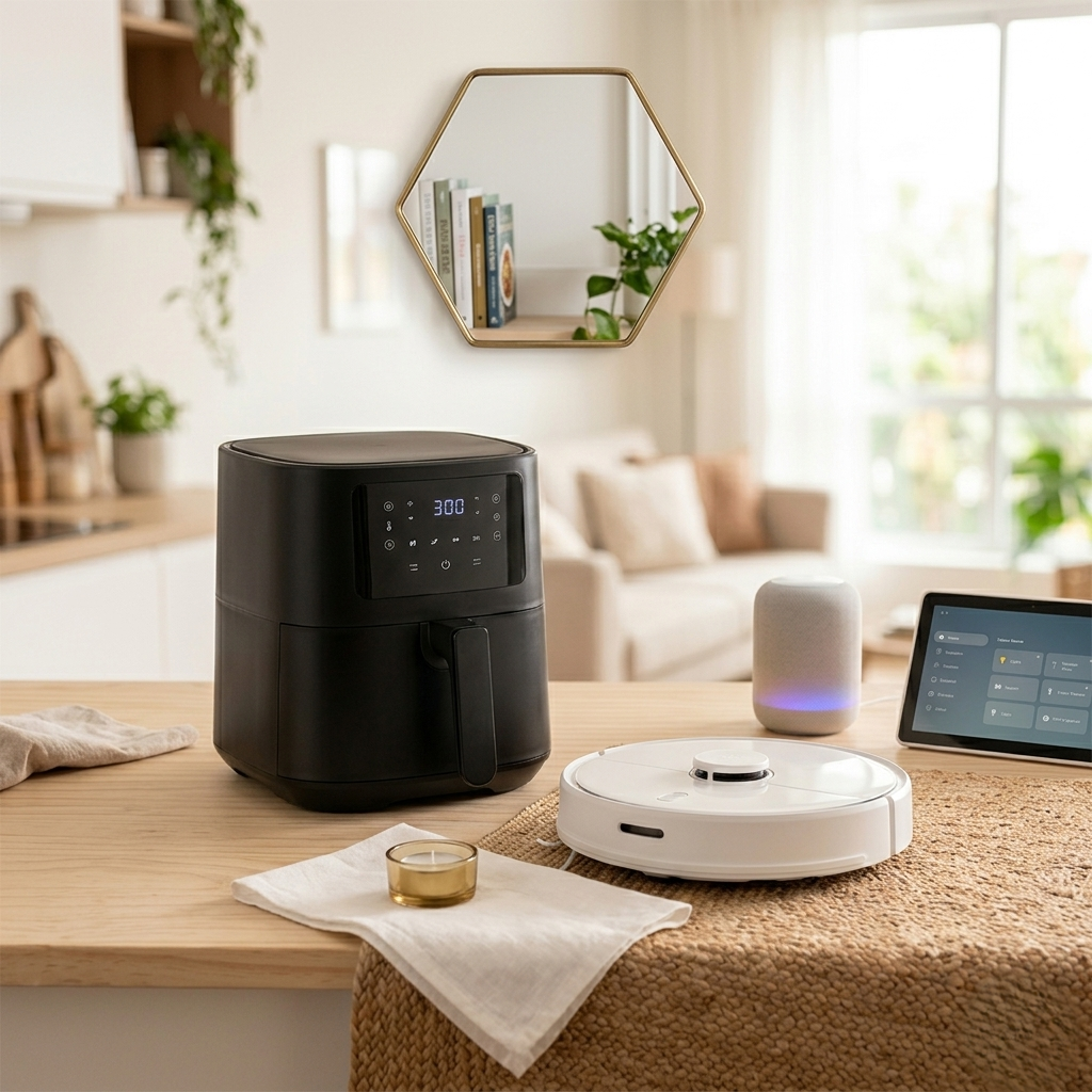Sua casa inteligente começa aqui. Ganhe tempo para o que realmente importa! Facilitamos sua rotina com uma seleção premium de eletroportáteis: Air Fryers, robôs aspiradores e utensílios tecnológicos que otimizam seu tempo e suas tarefas. Explore itens que unem design e funcionalidade com ofertas exclusivas para o seu bolso.